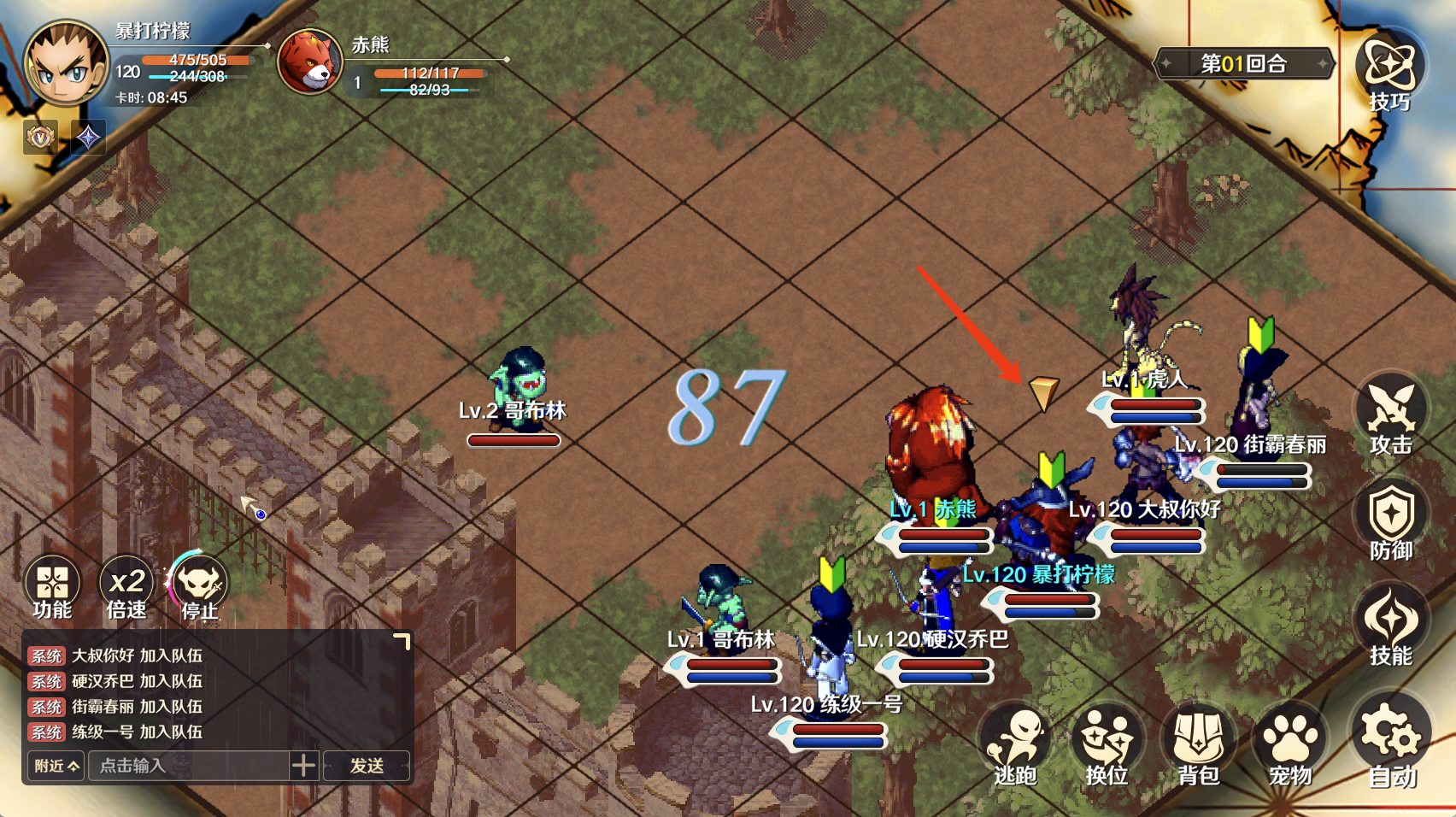 战斗操作采用轮询,按照角色箭头指示操作的对象逐一选择,无缝操作。